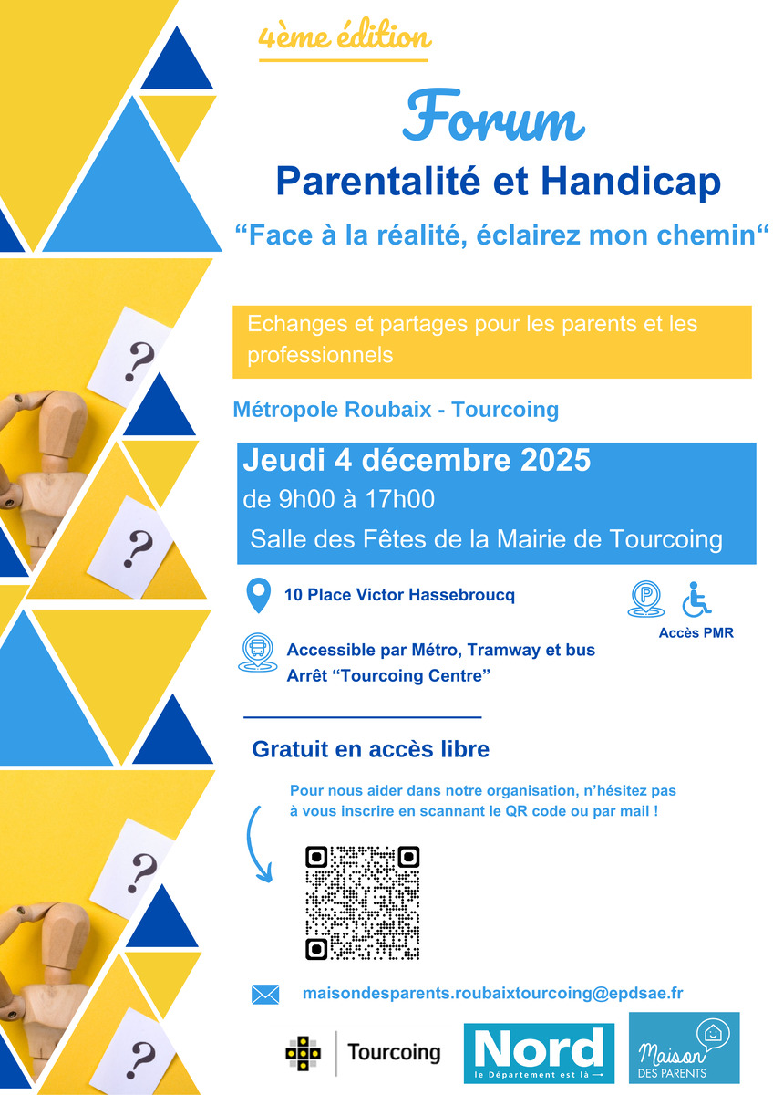 Entrée libre, inscription en ligne ou par mail à maisondesparents.roubaixtourcoing@epdsae.fr